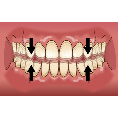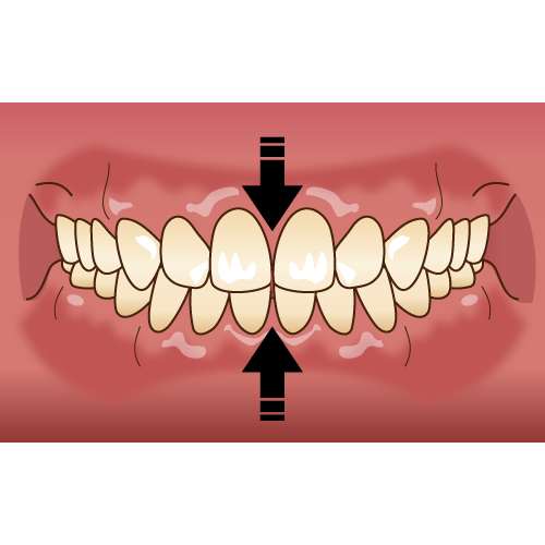上下の歯を強く噛みしめるタイプの歯ぎしり。大きなストレスなどがある時に歯を強く食いしばるのがクレンチング。