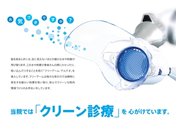 歯科医院では、処置を行う際、歯科医療従事者と患者さんがとても近い距離で、比較的長時間接します。万が一、新型コロナウイルスに感染された方が受診された場合、歯科医療従事者を介して、他の患者さんへ感染を拡大させてしまう可能性が考えられます。 また、待合室などの共有スペースでは、他の患者さんへ感染を拡大させる可能性もあります。当医院では院内感染防止に最大限の対策をとってはおりますが、感染拡大のリスクを可能な限り避けるため、発熱、咳等の症状がある方は、受診をお控えいただきますよう、ご協力をお願いします。